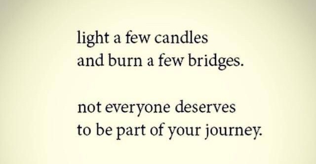 You get one chance to live the absolute happiest life you can; so burn the bridges of anyone who stands in your way and let those flames burn bright to show you the path to your future. 🔥