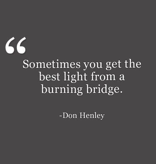 Let that bridge burn and walk a way; with your head held high and the fire of your soul burning so bright that it will scorch and blind those who stand in your way yet warmth and light a path for the ones who are willing to endure and warm the hearts of those near and dear to you.